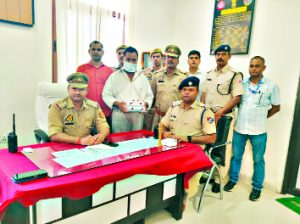 जीआरपी कैंट और रेलवे सुरक्षा बल (आरपीएफ) की संयुक्त टीम ने एक शातिर मोबाइल चोर को शनिवार को कैंट रेलवे स्टेशन से गिरफ्तार किया है। तलाशी के दौरान आरोपित के पास से चोरी के चार मोबाइल, एक चेन, एक अंगूठी पीले धातु एवं ३२ सौ रुपये नकद बरामद किया गया है। जीआरपी इंस्पेक्टर रजोल नागर एवं आरपीएफ प्रभारी संदीप यादव ने बताया कि जीआरपी के उप निरीक्षक आनंद कुमार यादव और हेड कांस्टेबल रामपाल यादव, धर्मेंद्र कुमार और आरपीएफ के हेड कांस्टेबल प्रमोद कुमार राय, कांस्टेबल वीरेंद्र कुमार के साथ सीआईबी के हेड कांस्टेबल राजीव कुमार एवं कांस्टेबल सतीश यादव स्टेशन पर संयुक्त रूप से चेकिंग कर रहे थे। उसी दौरान स्टेशन के प्लेटफार्म नंबर एक के पूर्वी छोर से काशी साईड की तरफ एक संदिग्ध व्यक्ति दिखाई दिया। वह कहीं जाने के फिराक में था। शक होने पर टीम ने आवश्यक बल प्रयोग कर उसे पकड़ लिया। पूछताछ में उसने अपना नाम संजय कुशवाहा पुत्र हृदय नारायण कुशवाहा, निवासी (डेढगांव) थाना रेवतीपुर (गाजीपुर) बताया। तलाशी के दौरान चोरी के चार मोबाइल बरामद हुआ। जो कैंट स्टेशन छह महीने पहले एक बैग छीना था। उसमें दो मोबाइल और कुछ रुपये थे। और दो मोबाइल और बरामद हुए वे भी कैंट स्टेशन से चोरी किया था। साथ ही एक चेन, एक पीले धातु की अंगूठी एवं ३२ सौ रुपये नकद मिले। कुल कीमत लगभग बीस लाख रुपये आंकी गयी। इंस्पेक्टर ने बताया कि चोरी समेत अन्य मामलों में कई बार वह जेल जा चुका है। गिरफ्तार आरोपित के खिलाफ थाना जीआरपी डीडीयू में चार, जीआरपी कैंट में चार और जीआरपी चारबाग लखनऊ में एक मुकदमा दर्ज है। आरोपित के खिलाफ काररवाई करते हुए न्यायालय में पेश किया गया।
