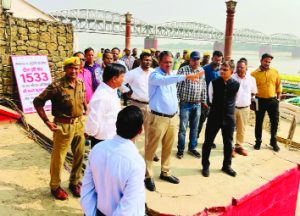 नमो घाट से राजघाट तक मंडलायुक्त व जिलाधिकारी ने किया स्थलीय निरीक्षण