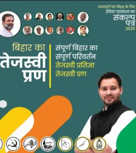 पटना (आससे)। महागठबंधन (इंडिया महागबंधन) ने अपनी साझा घोषणा पत्र जारी कर दी है। इसे तेजस्वी का प्रण नाम दिया गया है। पटना के एक बड़े होटल में मंगलवार शाम महागठबंधन के घटक दलों के प्रमुख नेताओं ने अपने मुख्यमंत्री फेस तेजस्वी यादव के नेतृत्व में इसे जारी किया। तेजस्वी यादव ने कहा कि महागठबंधन के घोषणा पत्र में जितनी बातें कहीं गई हैं, वह सब लागू की जाएगी। हमलोगों को बिहार को बनाने का काम करना है। हमलोगों ने आपके सामने संकल्प पत्र रखा है। हमलोगों का प्रण है कि बिहार को नंबर वन कैसे बनाएं। रोजगार के लिए बजट कहां से लाएंगे? इस सवाल पर तेजस्वी यादव ने कहा कि हमलोग झूठे वादे नहीं करेंगे। एक-एक बातों पर एक्सपर्ट से चर्चा की गई है। काफी मंथन के बाद हमलोगों ने यह घोषणा पत्र लाया है। 2020 में भी लोग बोलते थे कि कहां से पैसा लाएगा? लेकिन, हमलोगों ने कर के दिखा दिया। 17 महीने में अपने वादे पूरे किए। अब फिर से कह रहे हैं एक एक परिवार को नौकरी देंगे। आपलोग बजट की चिंता मत कीजिए। तेजस्वी यादव ने कहा कि 14 नवंबर को आने वाली सरकार, आप सभी के लिए बिहार में ही रोजी-रोजगार का प्रबंध करेगी। बिहार का कोई भी बेटी-बेटा मजबूरी में अपने पिता अपनी माता को छोड़ कर बाहर जाने को विवश ना हो यही प्रार्थना और संकल्प करते हैं। हमलोग बिहार की धरती को नई ऊंचाइयों तक ले जाएंगे।